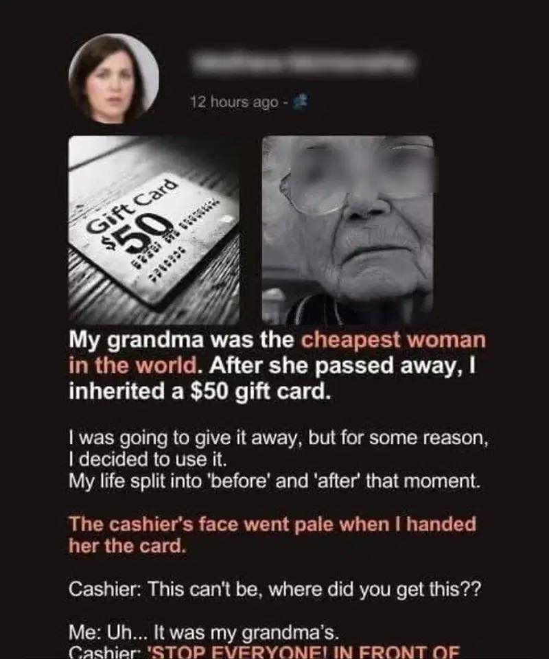 At first, I didn’t think much of it. It was a kind gesture, though somewhat out of character. Grandma wasn’t one to give gift cards; she believed in hand-written letters and thoughtful gifts. A gift card seemed… impersonal, almost.