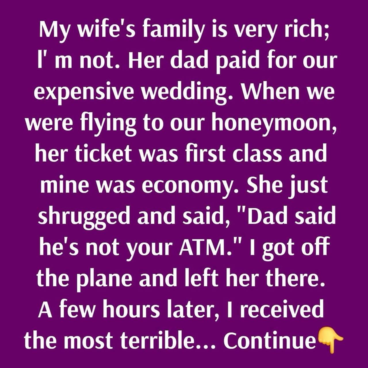 Confused, he asked about it. His wife simply shrugged and said, “This sucks, but Dad says he’s not your money machine.”