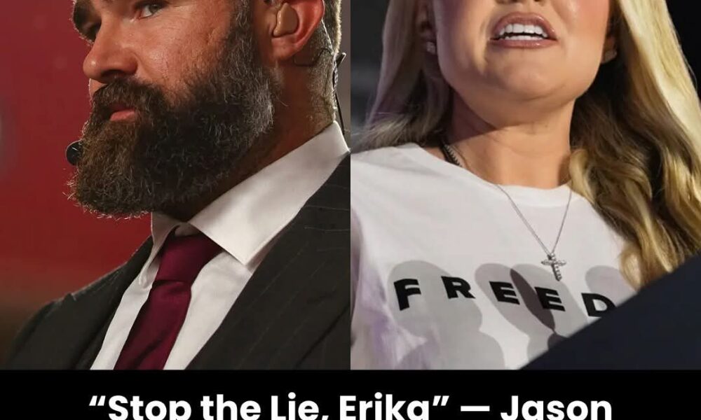 Jason Kelce just dropped a bombshell that has the entire internet reeling — and this time, his target wasn’t an NFL rival, but Erika Kirk, wife of political commentator Charlie Kirk.