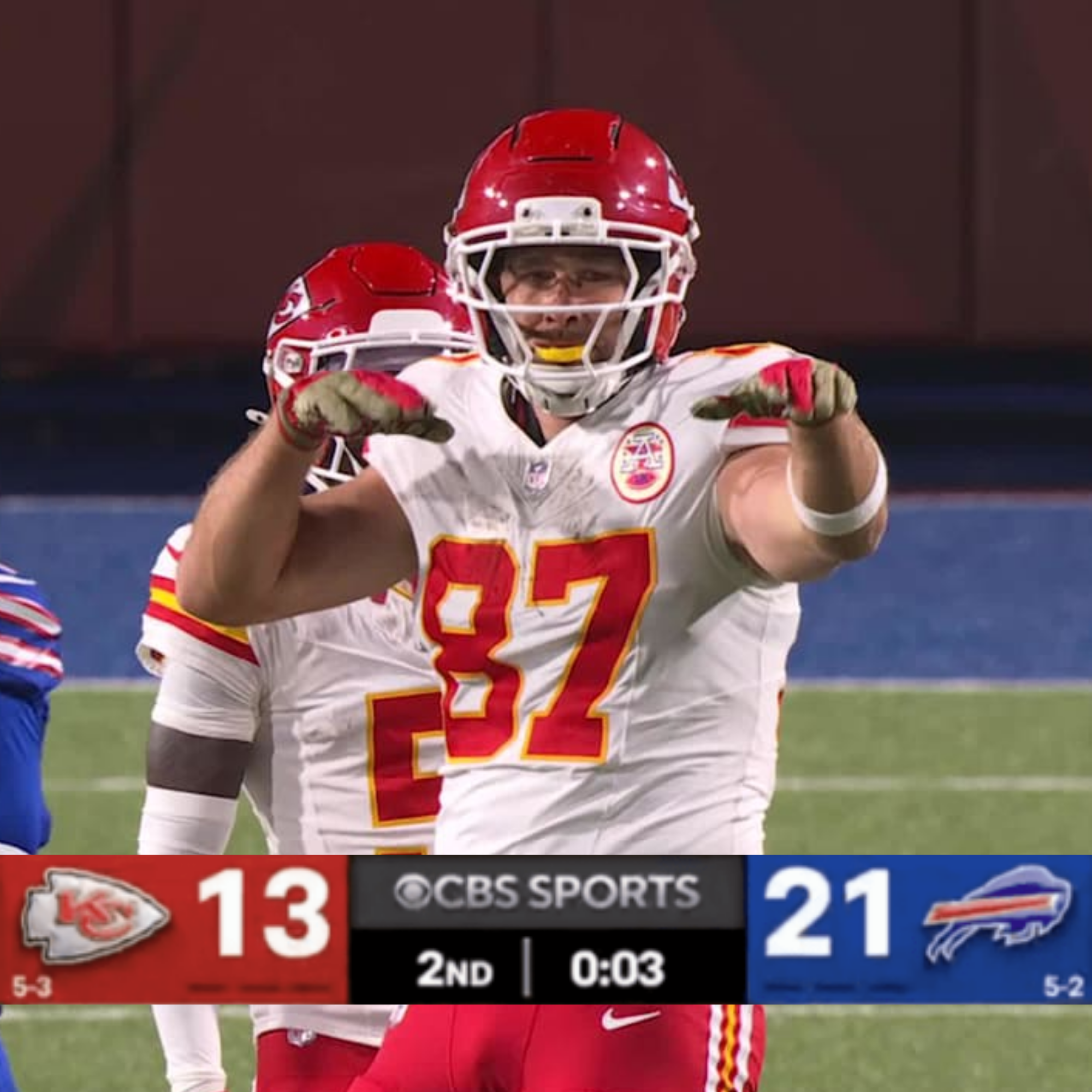 With fewer than 10 seconds remaining in the first half, the Chiefs had the ball at the Buffalo 1-yard line, looking to cut into their deficit. Kansas City ultimately settled for a field goal after Mahomes’ pass to Kelce in the end zone fell incomplete on 3rd-and-goal. The tight end, however, took the worst of the play, absorbing a hard hit to the chest from Bills safety Cole Bishop.