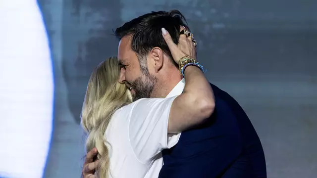 Vance then made his way onto the stage and embraced Erika, with onlookers taken aback by the length of their hug, which also saw the politician placing his hands on the mother-of-two’s hips, whilst she seemingly ran her hands through his hair.