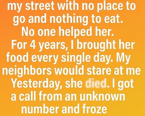 I never set out to become part of her story. I was just her neighbor. My days were full of errands, work, and ordinary life. But each time I saw her sitting alone, something in me stirred. It wasn’t guilt. It was recognition—the kind that grows with age, as we begin to understand how easily a person can fall through the cracks.