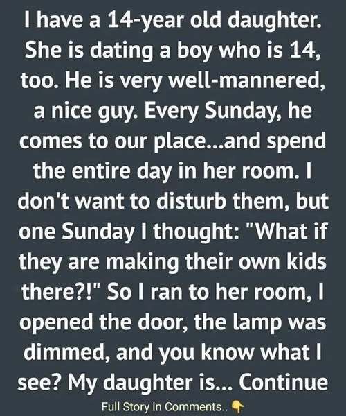 One quiet Sunday afternoon, I heard laughter drifting from behind her closed bedroom door. It was warm, familiar, and paired with the soft rise and fall of two teenagers trying to keep their voices down. Her boyfriend—also fourteen—was visiting, as he often did on Sundays.