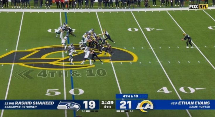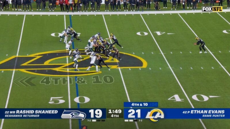 Trailing 21-19 with first place in the NFC West on the line, Seattle’s defense forced the Rams to punt the ball away with just under two minutes remaining. Sean McVay sent out Ethan Evans to try and pin Seattle deep.