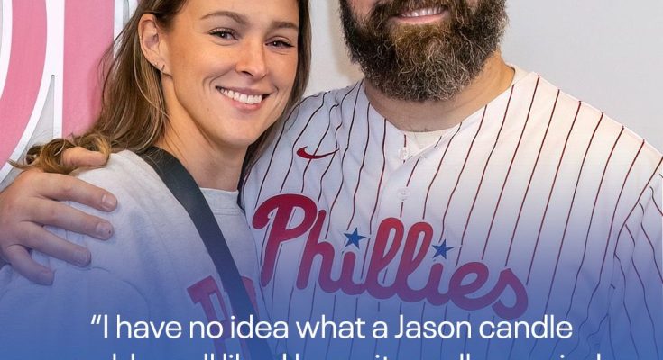 Kylie Kelce shared her candid thoughts about a Jason Kelce-scented candle on her Not Gonna Lie podcast Nov. 20, and she’s not so sure she wants you to smell it.