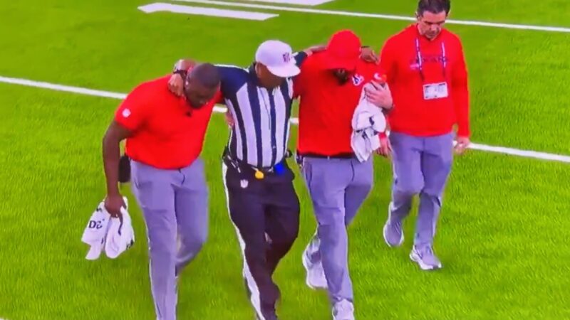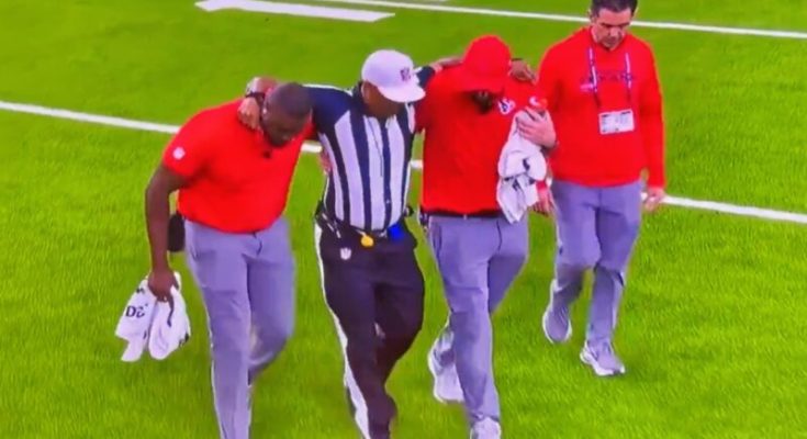 NFL referee Adrian Hill had to be carted off the field after suffering an apparent leg injury during the Buffalo Bills-Houston Texans ‘Thursday Night Football’ game.