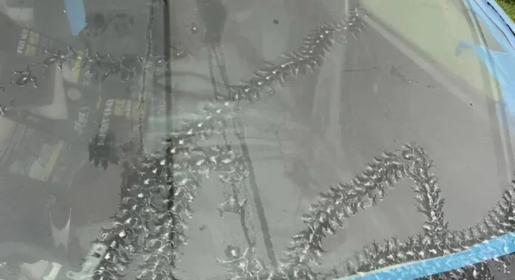Across the windshield were faint, scattered marks that looked almost like little footprints. They weren’t scratches or streaks of dirt, but clear impressions that caught the morning light in the most curious way. My first thought was that some small creature had clambered across the car overnight. But what kind of creature could leave such tiny, perfect prints?