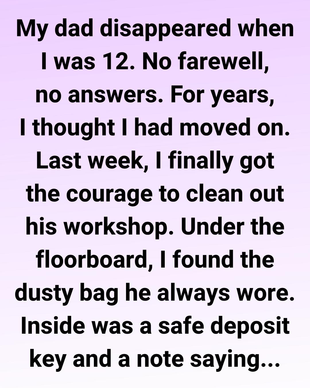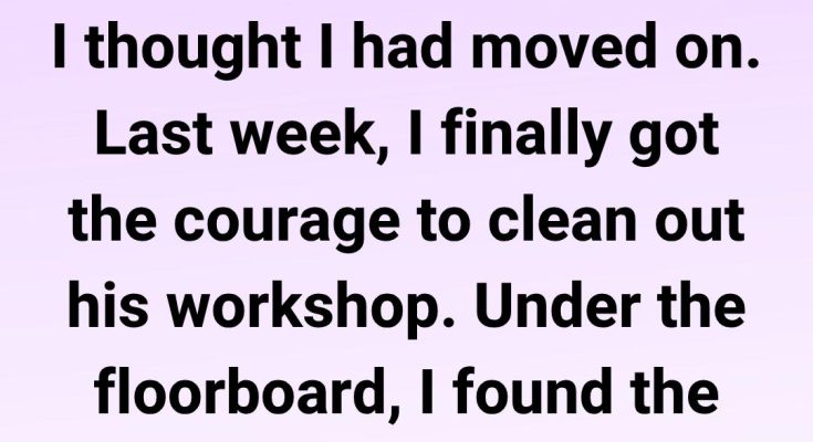 I started clearing shelves and sweeping the floor. Then, near the workbench, a loose board shifted beneath my foot. I almost kept going, but something made me kneel down. I lifted the plank and found a small, worn bag tucked underneath—the same bag my father used to carry everywhere, the one he would toss over his shoulder on his way out the door.