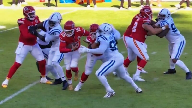 But, with the QB struggling on Sunday, having recently announced some curious personal news, even the CBS announcer seemed annoyed when Mahomes complained about the lack of a call after a Colts defender swiped at his facemask.