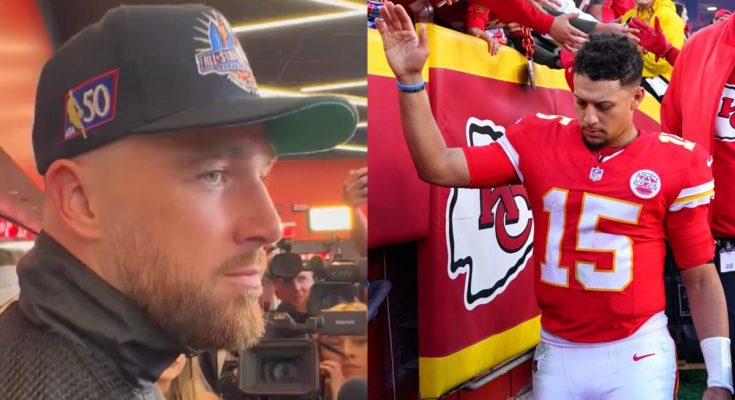 Speaking to reporters after the game, Travis Kelce mocked Patrick Mahomes’ signature “Kermit the Frog” voice with a hilarious answer to reporters.