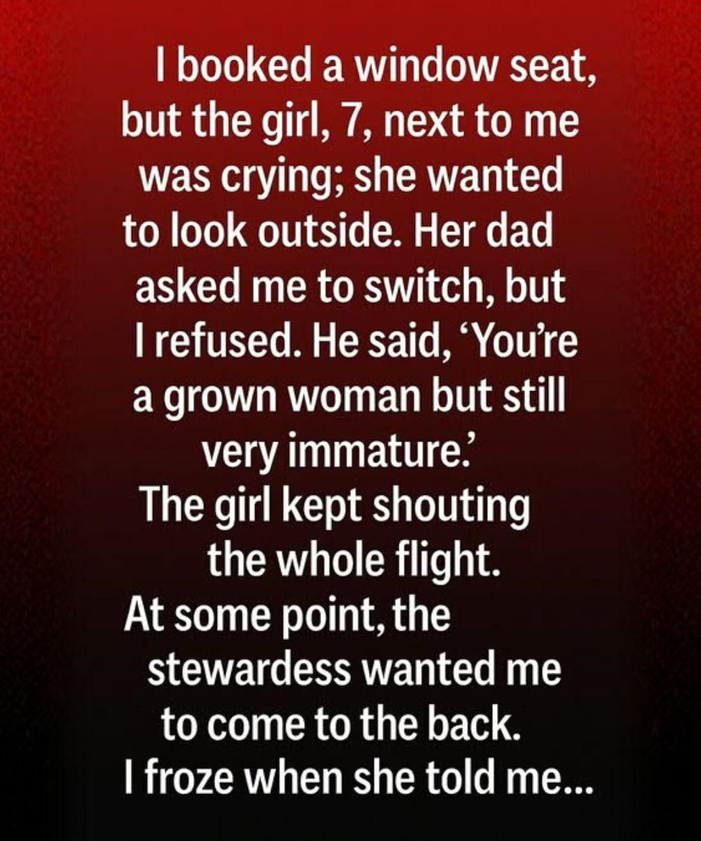Her disappointment was honest and immediate, the way only a child’s can be. Before long, her father leaned toward me and asked if I would switch seats so she could have the window.