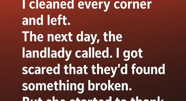 I told her, with a small laugh, that I was raised to leave a place better than I found it. That simple lesson has stayed with me all my life. The apartment wasn’t just a rental to me — it was a safe space at a time when I needed one. It sheltered me when I moved for work, when I didn’t know a single person in the city, and when everything around me felt uncertain. Cleaning it wasn’t a task; it was a quiet expression of gratitude.