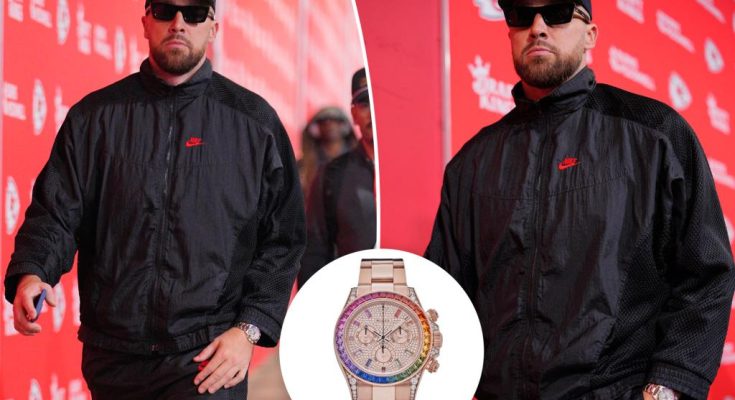 The Kansas City Chiefs tight end, 36, arrived at Arrowhead Stadium for Sunday’s game against the Indianapolis Colts sporting what appears to be a Rolex Daytona Rainbow watch, an ultra-rare rose gold timepiece with a pavé diamond face.