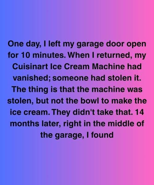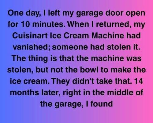 One afternoon, I accidentally left my garage door open for a few minutes. When I came back, my Cuisinart ice cream machine was missing, although the bowl that belonged with it was still there. I was confused but eventually gave up trying to figure out who had taken it. Fourteen months later, I walked into…