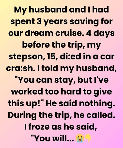 This is the story of one woman who chose her long-planned dream cruise over her husband’s grief — a decision that cost her not only her marriage, but the life she thought she had built. It is a story about priorities, sacrifice, regret, and the haunting question many of us eventually face: When is it finally okay to put yourself first?