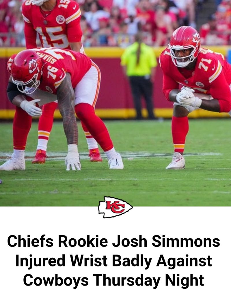 Tough news out of Kansas City: rookie left tackle Josh Simmons suffered a dislocated and fractured wrist during Thursday’s game against the Cowboys. The injury is serious enough that Simmons is expected to be out indefinitely, with an MRI scheduled for Friday to determine the full extent of the damage. He’ll also be consulting with specialists to figure out the best path forward in terms of treatment.