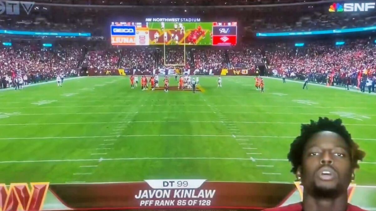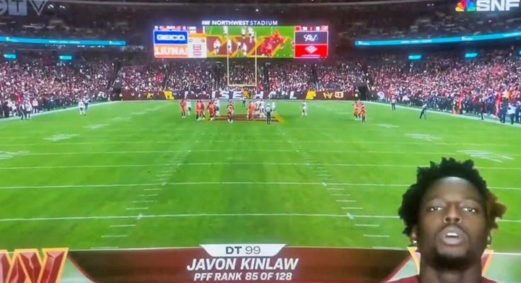 What did Javon Kinlaw say? That is what a ton of people watching Sunday Night Football said when his face appeared on the television as he introduced himself.