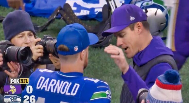 Seattle Seahawks quarterback Sam Darnold and Minnesota Vikings head coach Kevin O’Connell had a brief conversation after Sunday’s game at Lumen Field, as shown on Fox Sports’ cameras.
