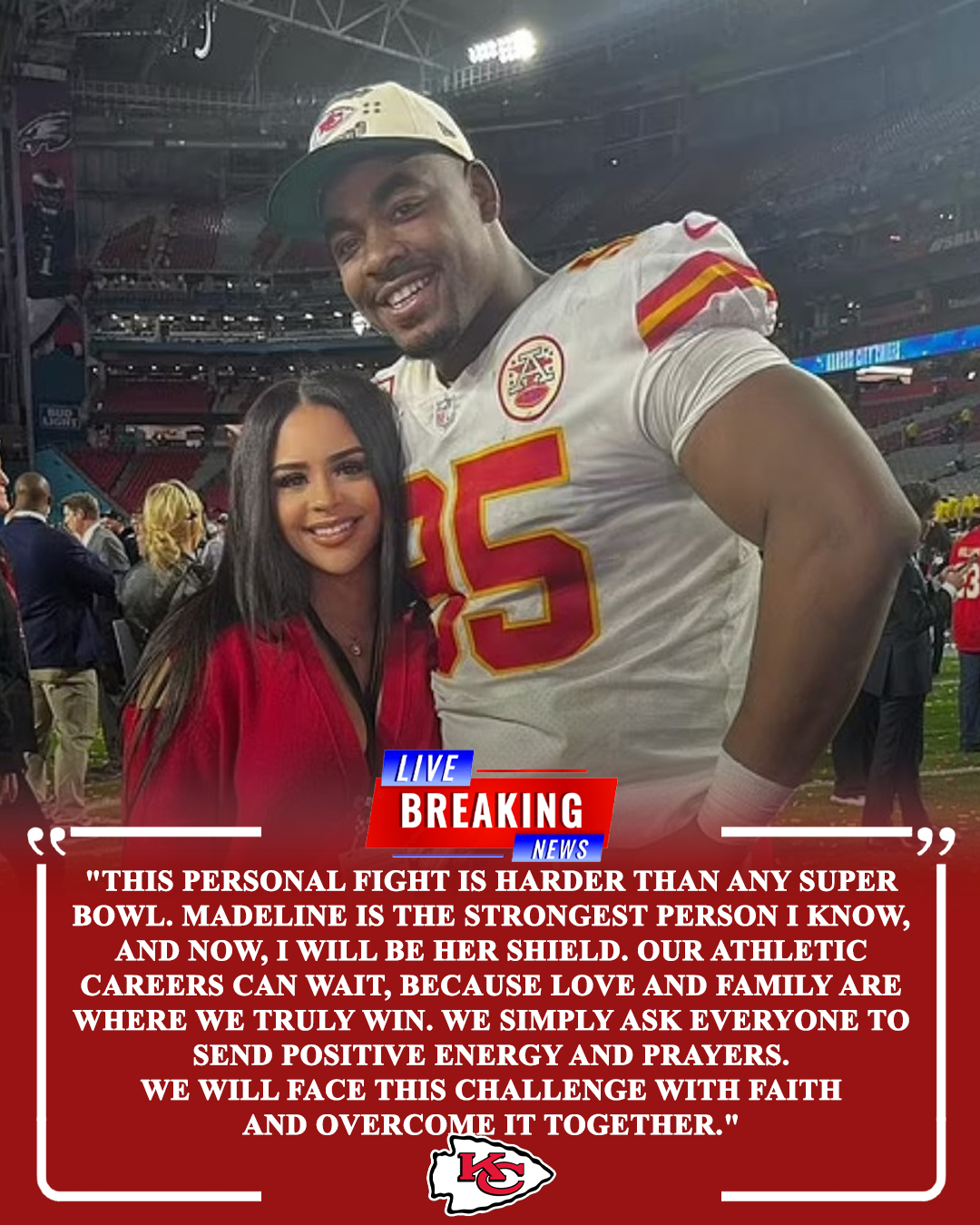 As the Chiefs prepare for their next matchup, the focus remains firmly on their teammate and his family. The franchise has faced adversity on the field before, but never with this level of emotional weight. One truth now defines the days ahead in Kansas City: football can wait — supporting Chris and Madeline Jones cannot