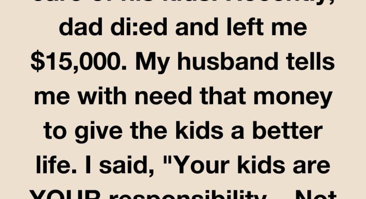 When the lawyer called to read the will, I expected maybe a little something—a watch, some old books. But no. Dad left me $15,000. Cash. Clean. No strings.