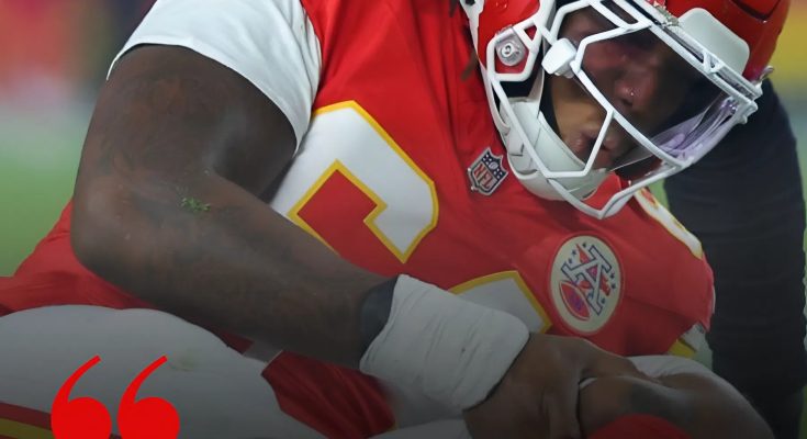 The Chiefs also lost two-time All-Pro cornerback Trent McDuffie to a hyperextended knee later in the contest. He left the field and did not return.