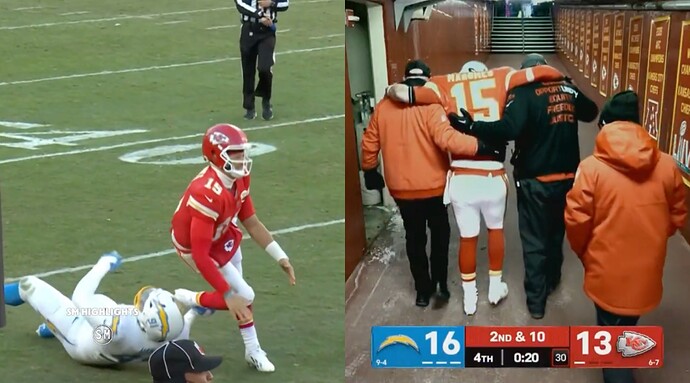 The injury occurred as Mahomes was tackled from behind by Chargers defensive end Da’Shawn Hand. Mahomes immediately reached for his right knee after being rolled up from behind and remained down on the sideline as he received treatment from Kansas City’s medical staff.