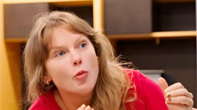 In a new clip appearing to be from her Disney docuseries which has circulated on social media, Swift was seen sporting a Chiefs shirt while watching the game on a large TV screen in a locker room.