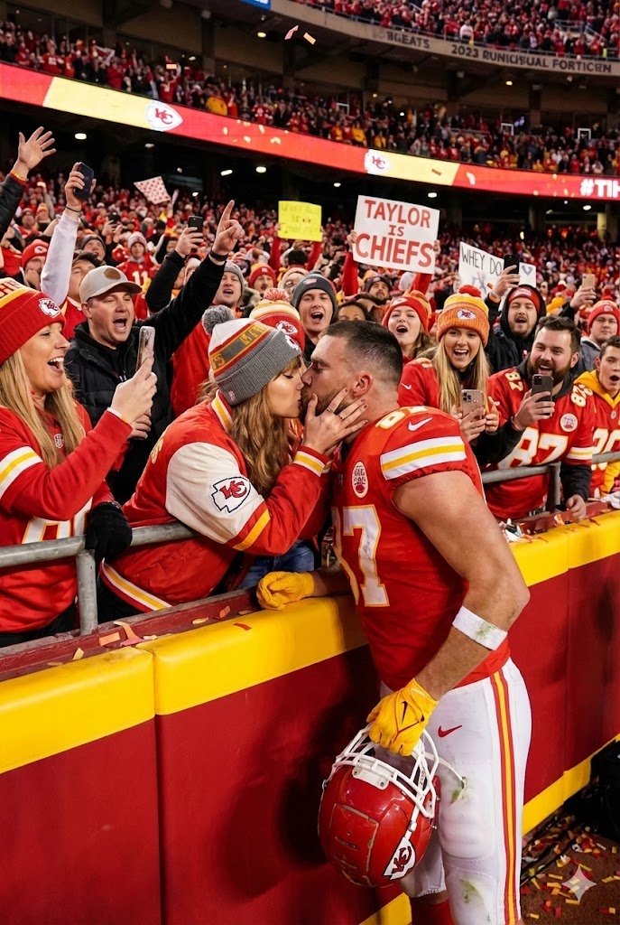 Ultimately, Taylor Swift and Travis Kelce’s on-field kiss was more than a fleeting headline; it was a celebration of love, playfulness, and authenticity. In an era dominated by curated images and carefully managed appearances, this spontaneous gesture stood out as a refreshingly genuine display of emotion. As fans continue to share and relive the moment, it is clear that the magic of their relationship resonates far beyond the stadium, leaving a lasting impression on hearts around the world.