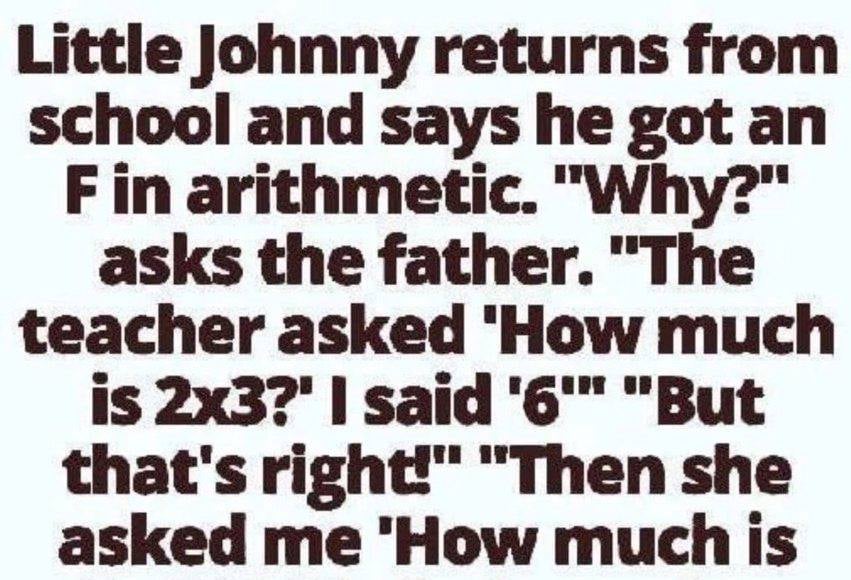 Johnny continued with a frown, “Then she asked, ‘What’s two times three?’”