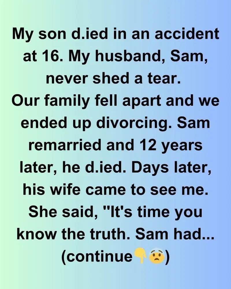 Sam was dead twelve years later. His second wife arrived at my door a few days after the funeral, her eyes heavy with something she needed to unload.