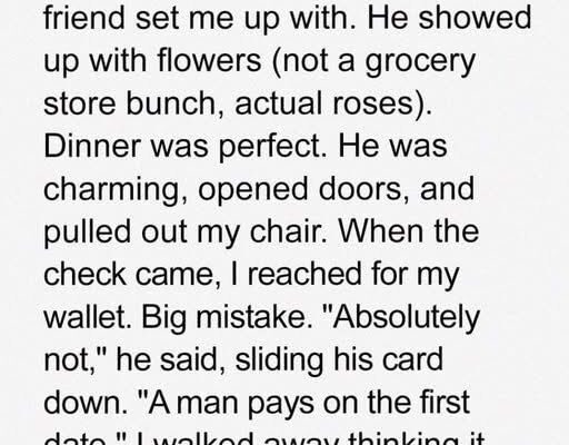 When Mia insisted on setting up her best friend on a blind date with her boyfriend’s friend, the narrator reluctantly agreed just to stop her constant persuasion. Though skeptical about blind dates, she was told Eric was courteous, romantic, and thoughtful. Surprisingly, he lived up to that reputation — arriving early, bringing roses, opening doors, and even gifting a small engraved keychain. Over dinner, he seemed genuinely kind and attentive, leaving her cautiously optimistic that maybe good men still existed.