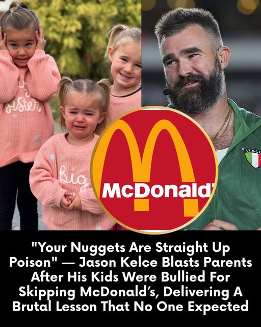 But recently, the “fun-loving” Kelce vanished, replaced by a father on a mission. After an incident involving his daughters being bullied for their healthy lifestyle, Jason delivered a scathing reality check to parents everywhere. His message was simple, brutal, and impossible to ignore: “Your nuggets are straight up poison.”