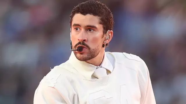 Bad Bunny divided fans as he stuck to his native Spanish for his entire set (Kevin Sabitus/Getty Images)