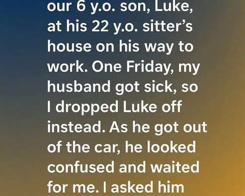 Everything changed one Friday morning when my husband woke up feeling sick. I offered to take Luke myself, expecting the same routine transaction I’d seen from the window all summer. But when we pulled into the babysitter’s driveway, something felt wrong. I told Luke it was time to hop out, but he just stood there, looking confused and a bit anxious. When I asked him why he wasn’t going in, his response completely caught me off guard: “Dad always goes inside with me first.”
