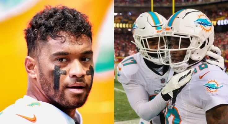 Miami Dolphins superstar wide receivers Jaylen Waddle and Tyreek Hill each delivered a hysterical response on what makes teammate and quarterback Tua Tagovailoa “different” this year.