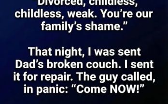 Dad died and left me nothing. My sister got the house. She said, “Divorced, childless, weak. You’re our family’s shame.” That night, I was sent Dad’s broken couch. I …